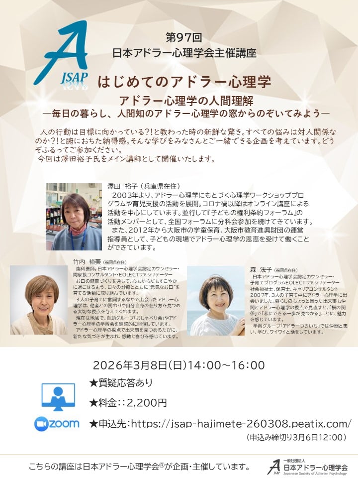 第97回日本アドラー心理学会主催講座