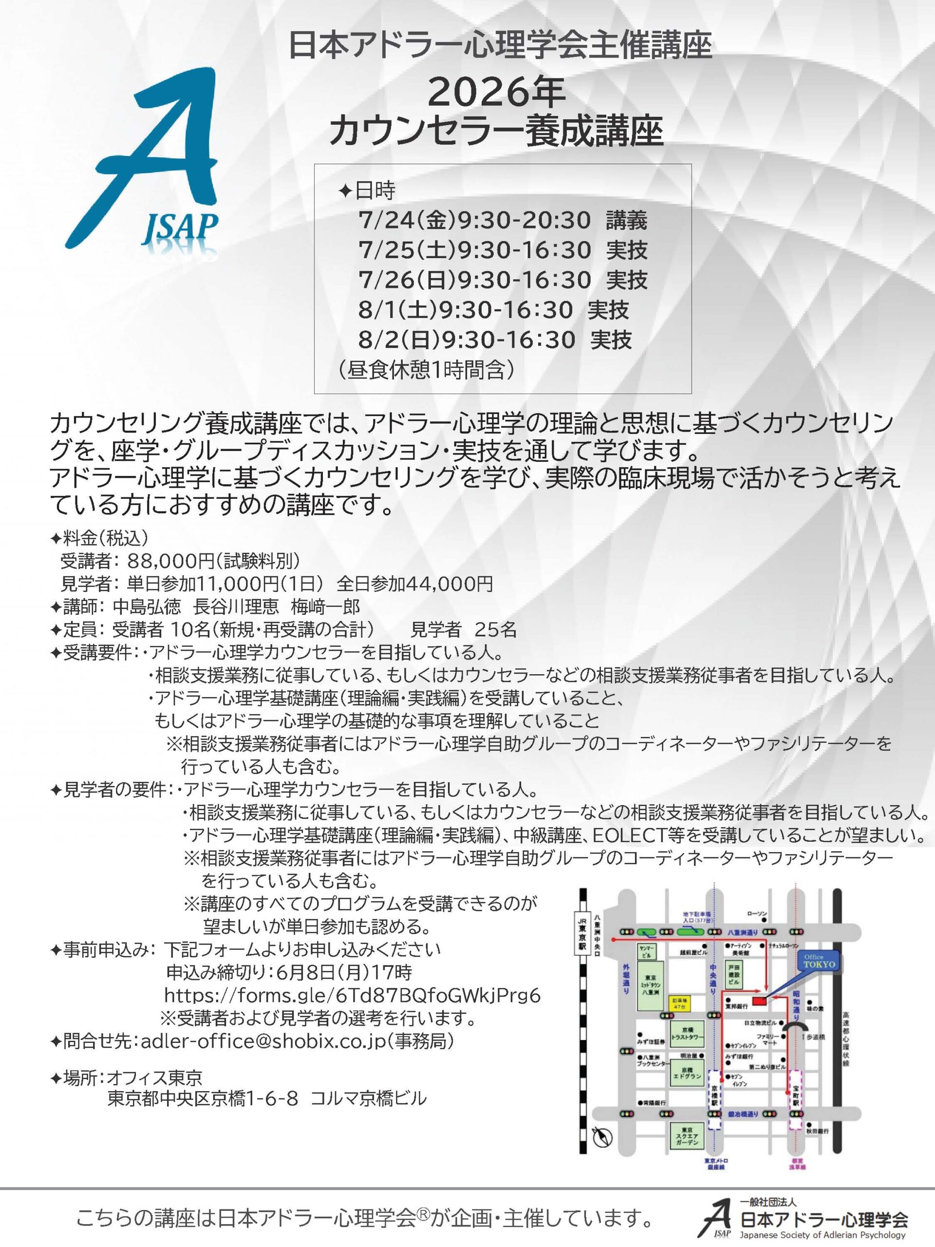 2026年カウンセラー養成講座(東京)